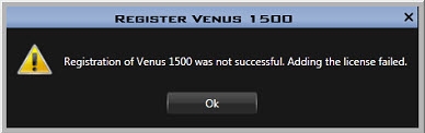 - Registration of Venus 1500 was not successful. Adding the license failed