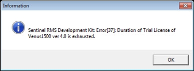 - Sentinel RMS Development Kit: Error [37]: Duration of Trial License of Venus1500 v4.0 is exhausted.