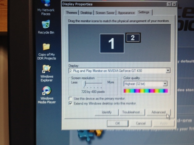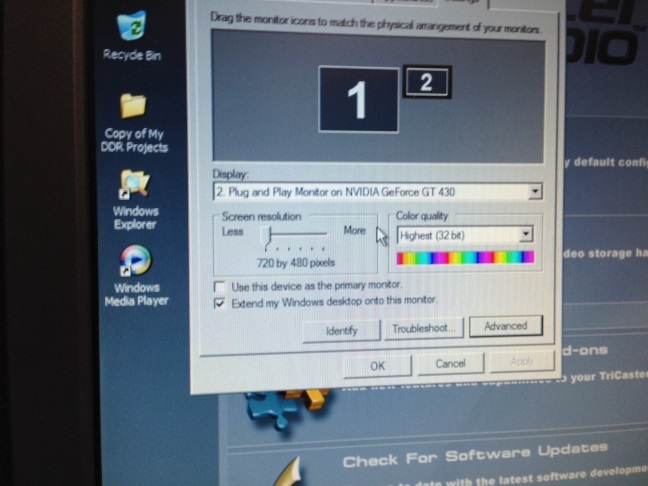 - Verify monitor 2 shows a 720x480 resolution and click ok.