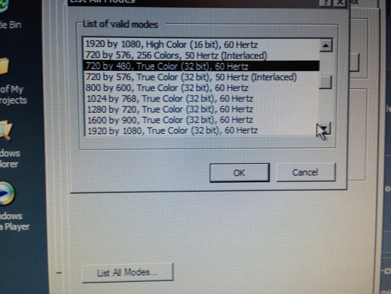 - Scroll up and select 720x480 True Color(32-bit) 60 Hertz.