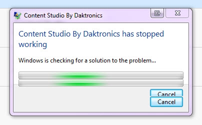 - "Content Studio By Daktronics has stopped working".