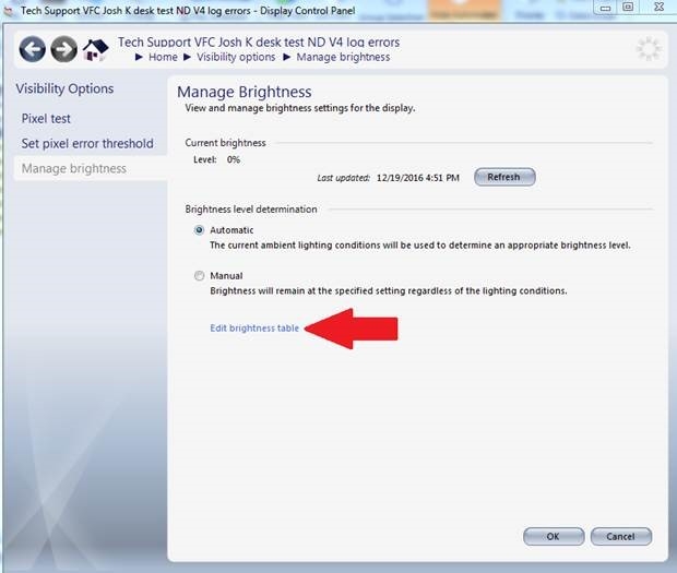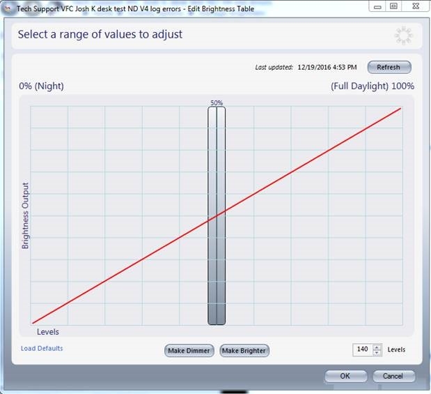 How do I adjust the brightness table for my display? It looks too bright at night. For example the controller reports the brightness to be 5%, but I want it to report 1%.