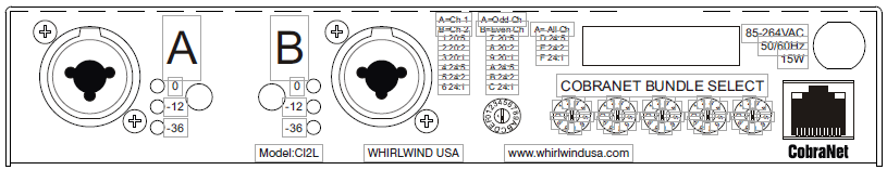 - CobraNet Bundle Select Rotary Dials are set to 100001.