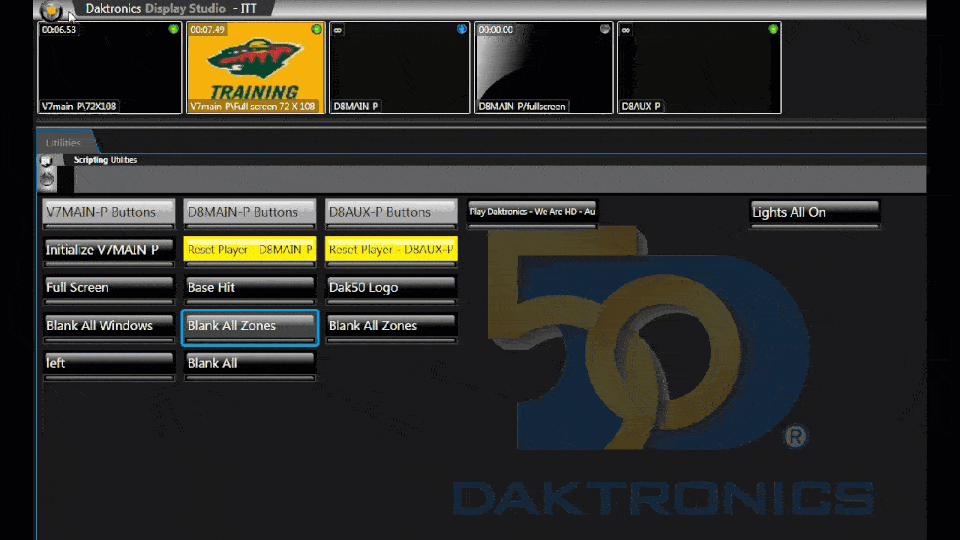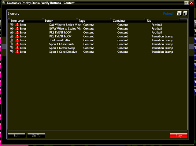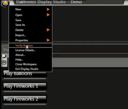 1. Click the Display Studio Hub to open the Main Menu. Choose Verify Buttons from the list. This will verify all buttons in the workspace.