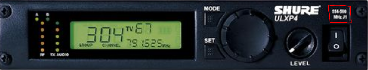 - For Shure ULX-P receivers, the frequency band can be found above the power switch