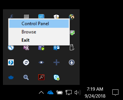 - In the Windows system tray, right click on the icon for the application you wish to troubleshoot and select "Control Panel"