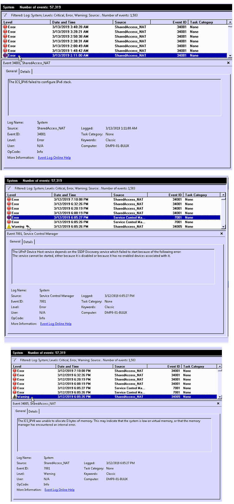 - The ICS_IPV6 failed to configure IPv6 stack.