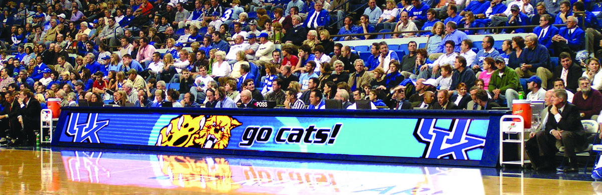 Daktronics LED Scorers Tables are indoor courtside displays used to show scoring/timing, video clips, animations and sponsor advertisements. They are used in high school, college and professional sports and are available in 6mm and 10mm pixel pitches, operated by the Show Control System and Venus Control Suite. Static backlit and non-backlit advertising models are also offered.