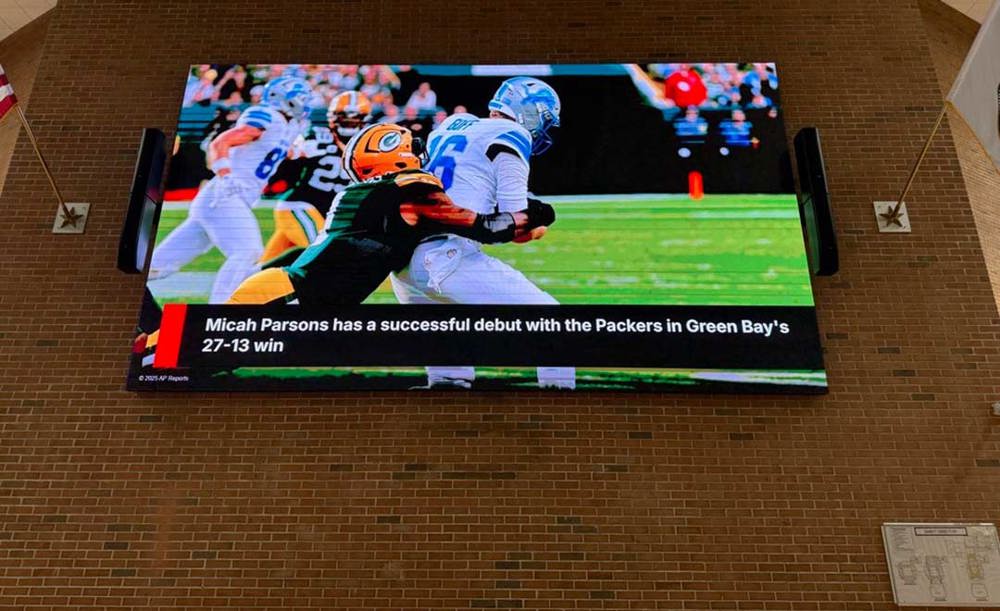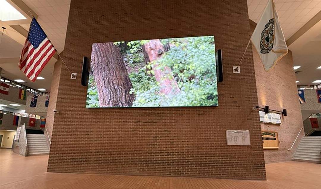 Located in the main hallway and atrium area of the school, the display has mass appeal to students throughout the school day and in between class periods. It can be used to deliver relevant school updates, share news items and other special messaging as needed.