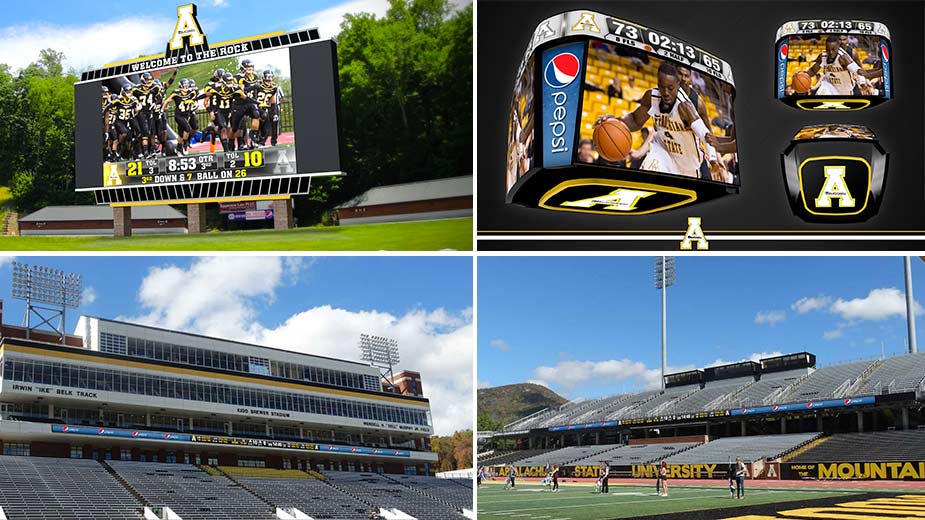 BROOKINGS, S.D. – Mar. 1, 2017 – Appalachian State University has selected Daktronics (NASDAQ-DAKT) of Brookings, South Dakota, to provide two new integrated LED video systems for Kidd Brewer Stadium and George M. Holmes Convocation Center on campus in Boone, North Carolina. Kidd Brewer Stadium will also be receiving new ribbon displays and a custom audio system integrated with the video system.